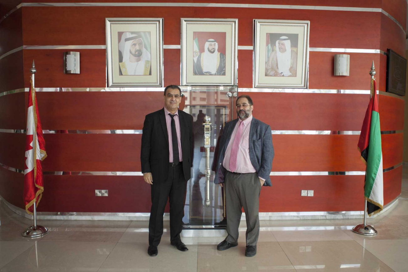The partnership began with Mr Buti Saeed Al Ghandi, Chancellor of Canadian University Dubai, presenting Engineer Essa Al Haj Al Maidoor, Director General of Dubai Health Authority, with the certificate at their Headquarters.