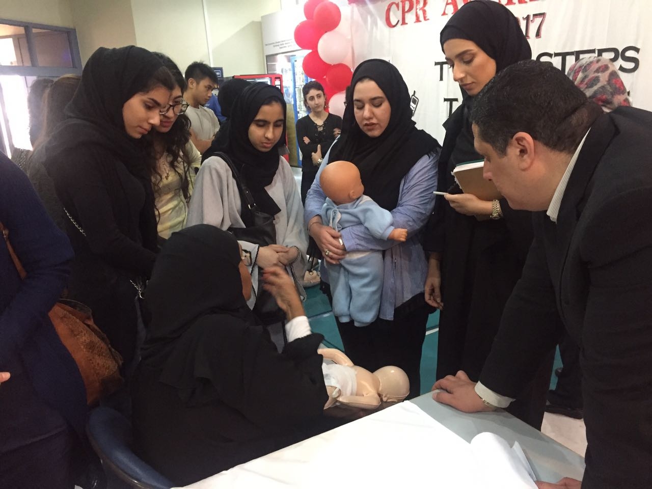 Under the supervision of Assistant Professor, Dr. Yassen Alfoteih, and Associate Professor, Dr. Rami El Khatib, the students attended the program hosted by the Critical Care Committee of Latifa Women and Children’s Hospital, which was organized to coincide with CPR awareness day.